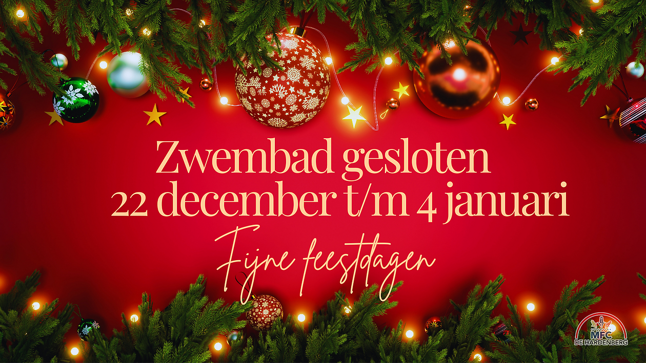 Het zwembad is gesloten van maandag 22 december tot en met zondag 4 januari 2026